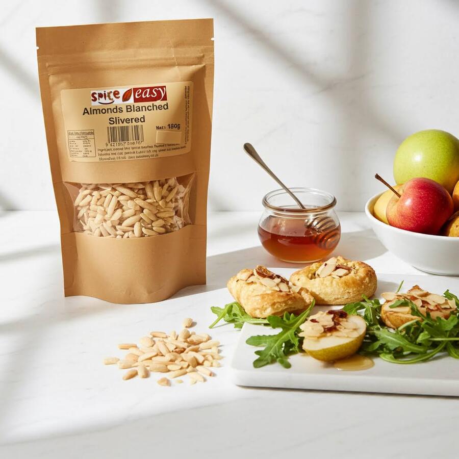 Our Blanched Slivered Almonds are premium almonds, skinned and expertly cut into thin, uniform slivers. Their delicate texture and mild, buttery flavour make them perfect for adding a elegant crunch to salads, desserts, and baked goods, without the distraction of skins. Add a touch of elegance and crunch: