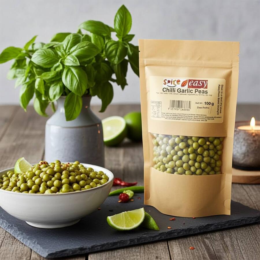 We take whole green peas and coat them in a fiery, aromatic blend of chillies and roasted garlic, creating a moreish snack that’s utterly addictive. Forget bland health food; this is where nutrition meets serious flavour.