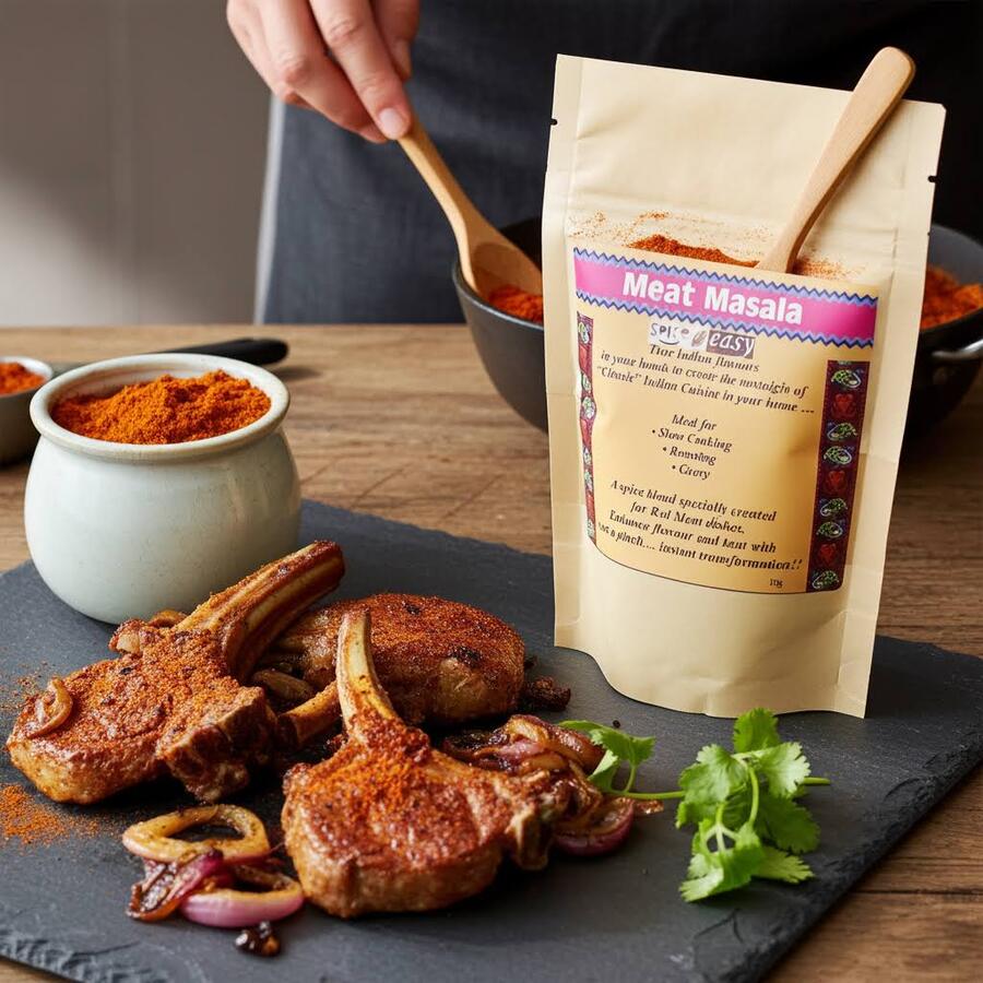 The Bold, Warming Spice for Hearty Meat Feasts.Unlock the deep, complex flavours of traditional Indian and South Asian meat dishes with our expertly crafted Meat Masala. This is not a mild blend; it's a robust, warming mix designed to stand up to the rich flavour of lamb, beef, and goat. We combine bold, earthy spices like coriander and cumin with warming black pepper, fragrant cinnamon, and cloves to create a powerful flavour profile that penetrates deep into meat, tenderizing it and building layers of savoury, aromatic goodness.