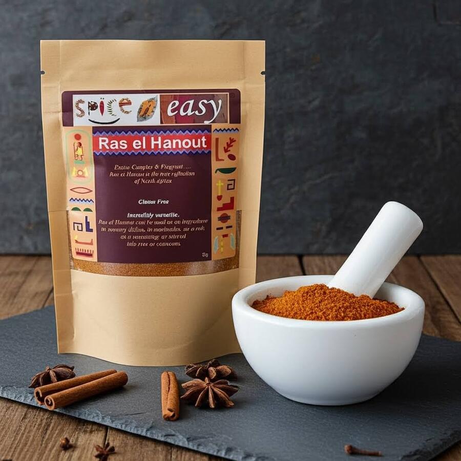 The "Top of the Shop" Masterpiece of Moroccan Spices.Ras el Hanout, meaning "head of the shop," is the most prized and complex spice blend in North African cuisine. Traditionally, it represents a spice merchant's very best offering—a unique, signature blend of their finest spices. Our version is a captivating symphony of warm, sweet, and slightly pungent flavours, featuring cinnamon, cumin, ginger, cardamom, allspice, and a whisper of rose petals.