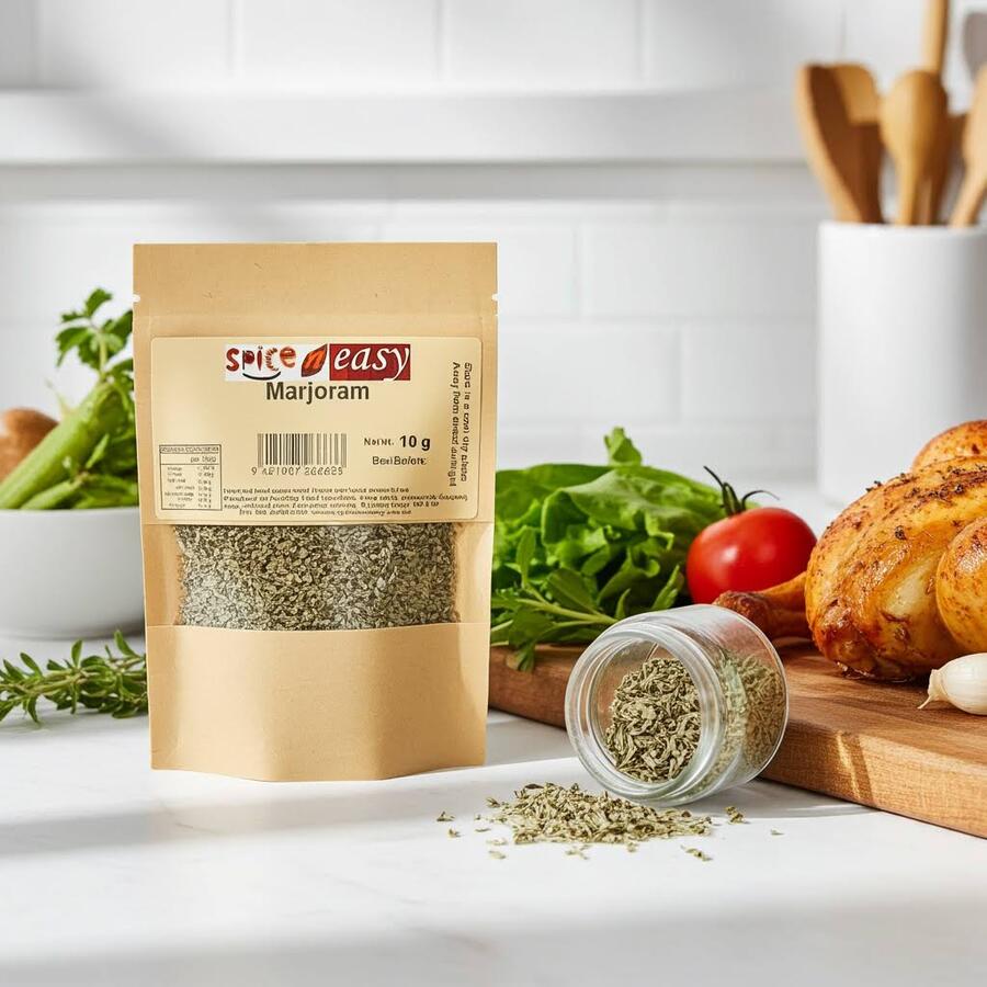Our Dried Marjoram offers a delicate, sweet, and slightly woody flavour with hints of citrus and pine. A classic herb in European cooking, it is milder and sweeter than oregano, making it perfect for seasoning meats, vegetables, soups, and sauces. A sprinkle of marjoram adds a touch of herbal elegance: