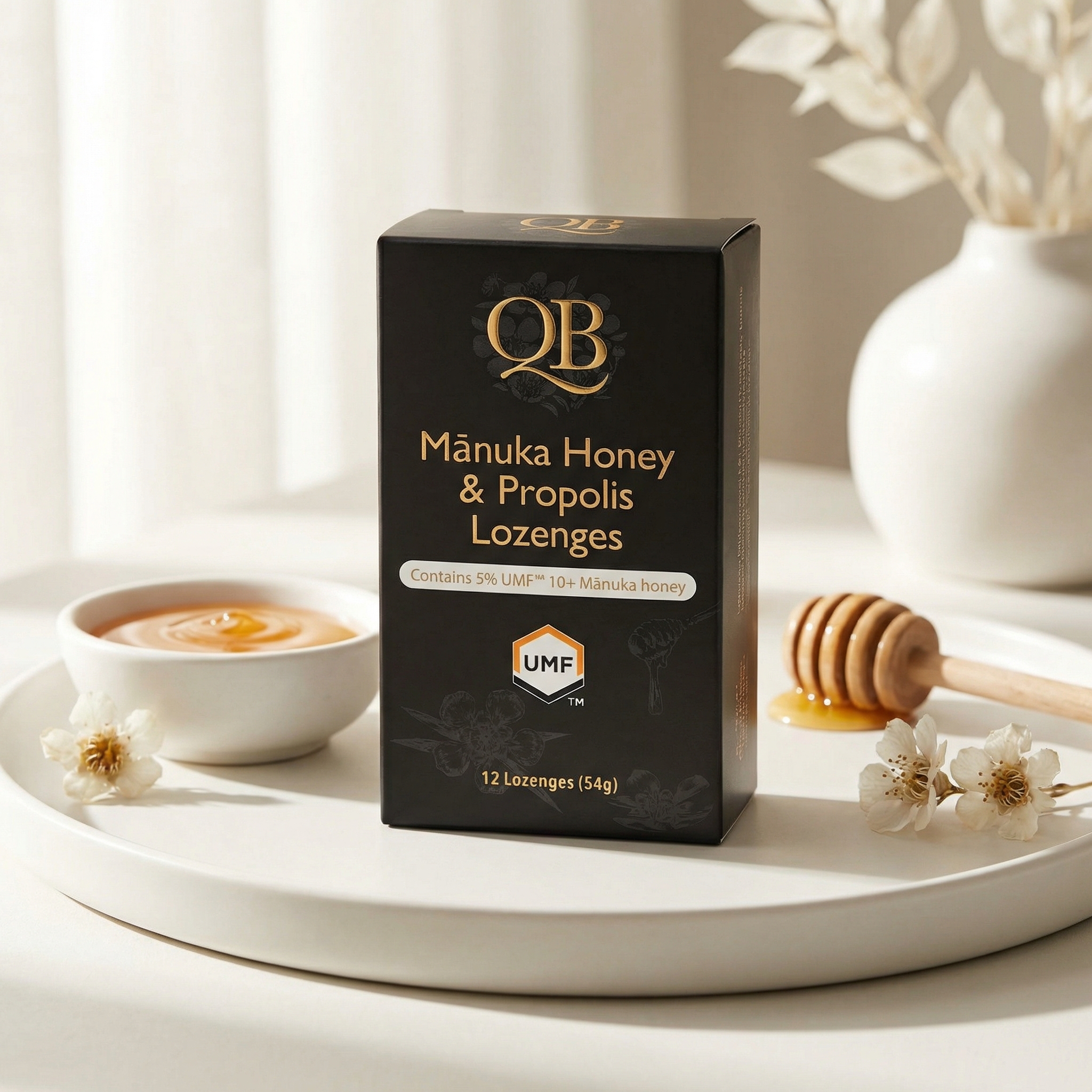 These lozenges blend premium Manuka honey with propolis to deliver a naturally comforting, smooth sensation — an easy, flavourful way to support your daily throat comfort and general wellness.