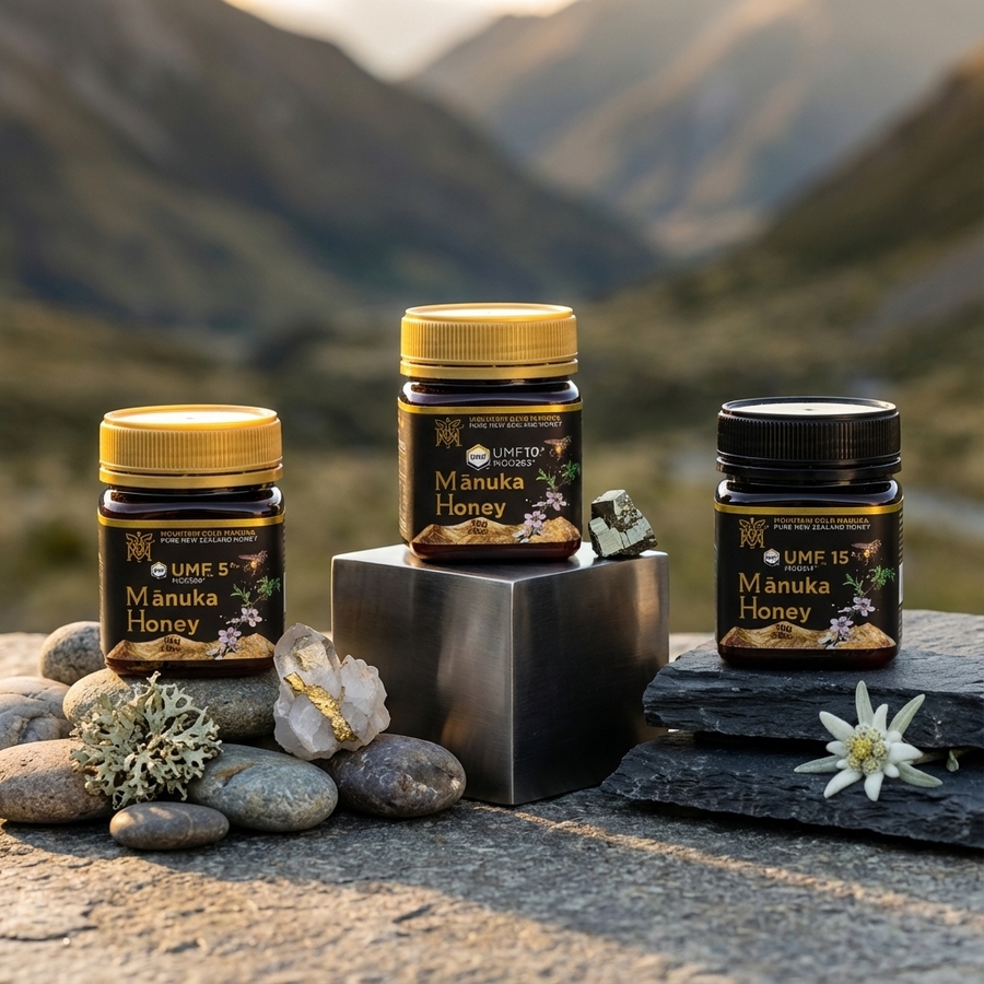Mountain Gold Manuka Honey Contains UMF 10+ /methylglyoxal 263+ activity.